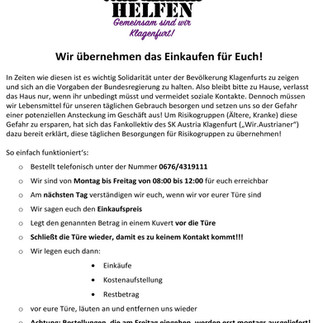 In schweren Zeiten wie diesen ist es umso wichtiger Zusammenhalt zu zeigen! Deshalb bitten wir euch darum, den Auflagen der Bundesregierung Folge zu leisten! Gleichzeitig haben wir uns dazu entschlossen, wichtige Besorgungen für die Personen zu machen, für die das Virus am gefährlichsten ist!